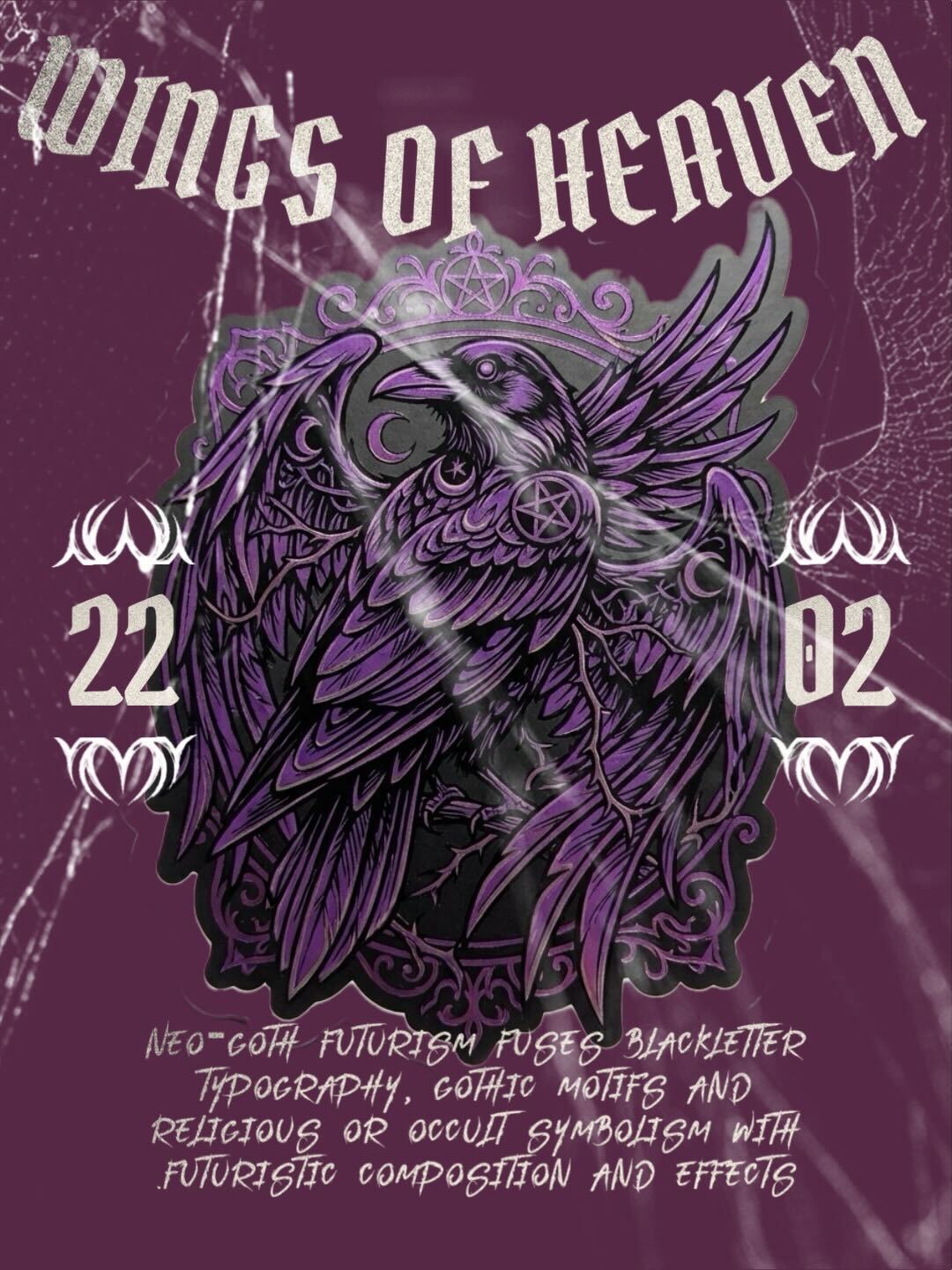 Neo-goth futurism combines blackletter typography, gothic motifs and religious or occult symbolism with futuristic composition and effects.