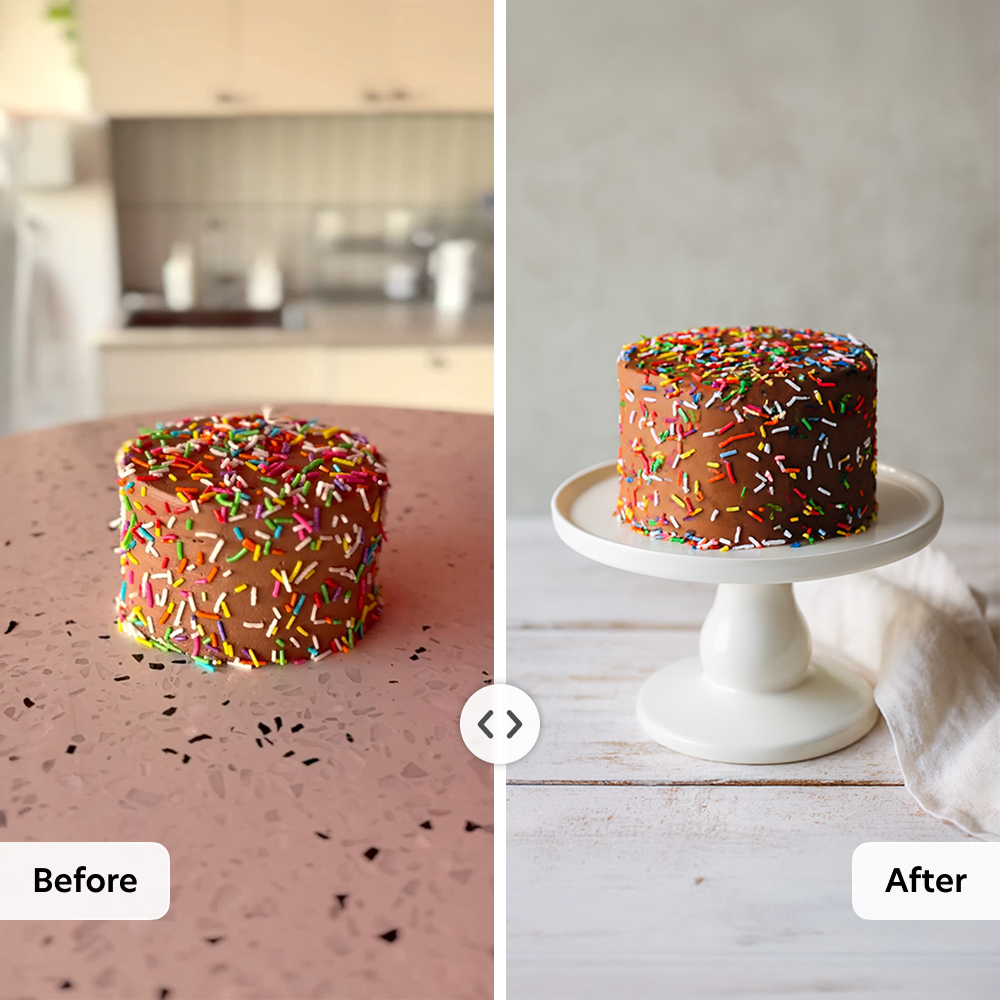 Have a specific idea in mind? Use Edit with AI to create custom scenes, remove distractions, change product colors for variations, or add new elements with a short prompt. You’ll get unique AI product photography that fits your brief while keeping product details accurate. It’s like having a magic wand!