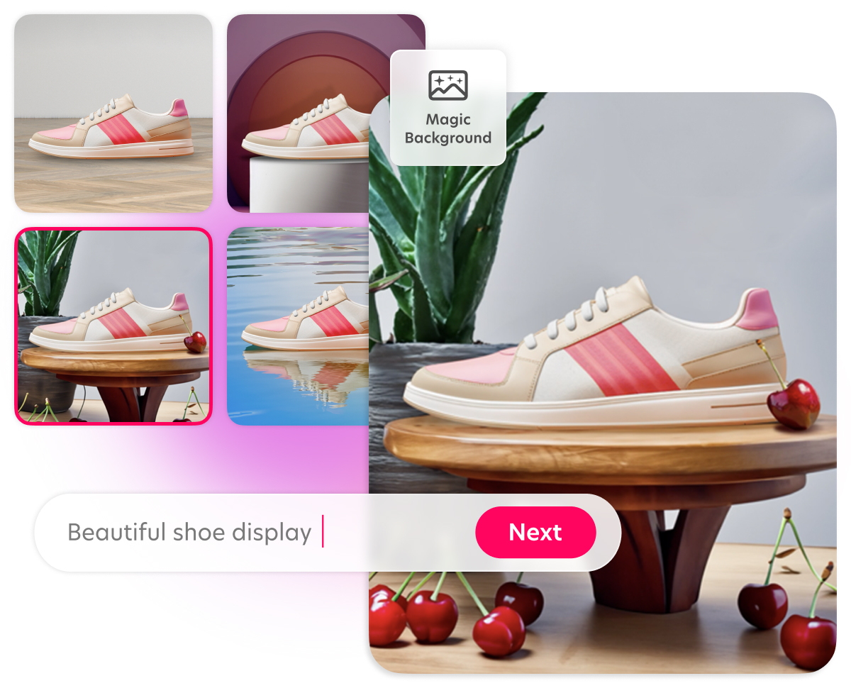 Place your product in realistic lifestyle or studio scenes with matched lighting and natural shadows. Magic Background gives you instant AI product staging styles like minimal, clean, nature, or futuristic, so your product photography looks great and drives clicks.