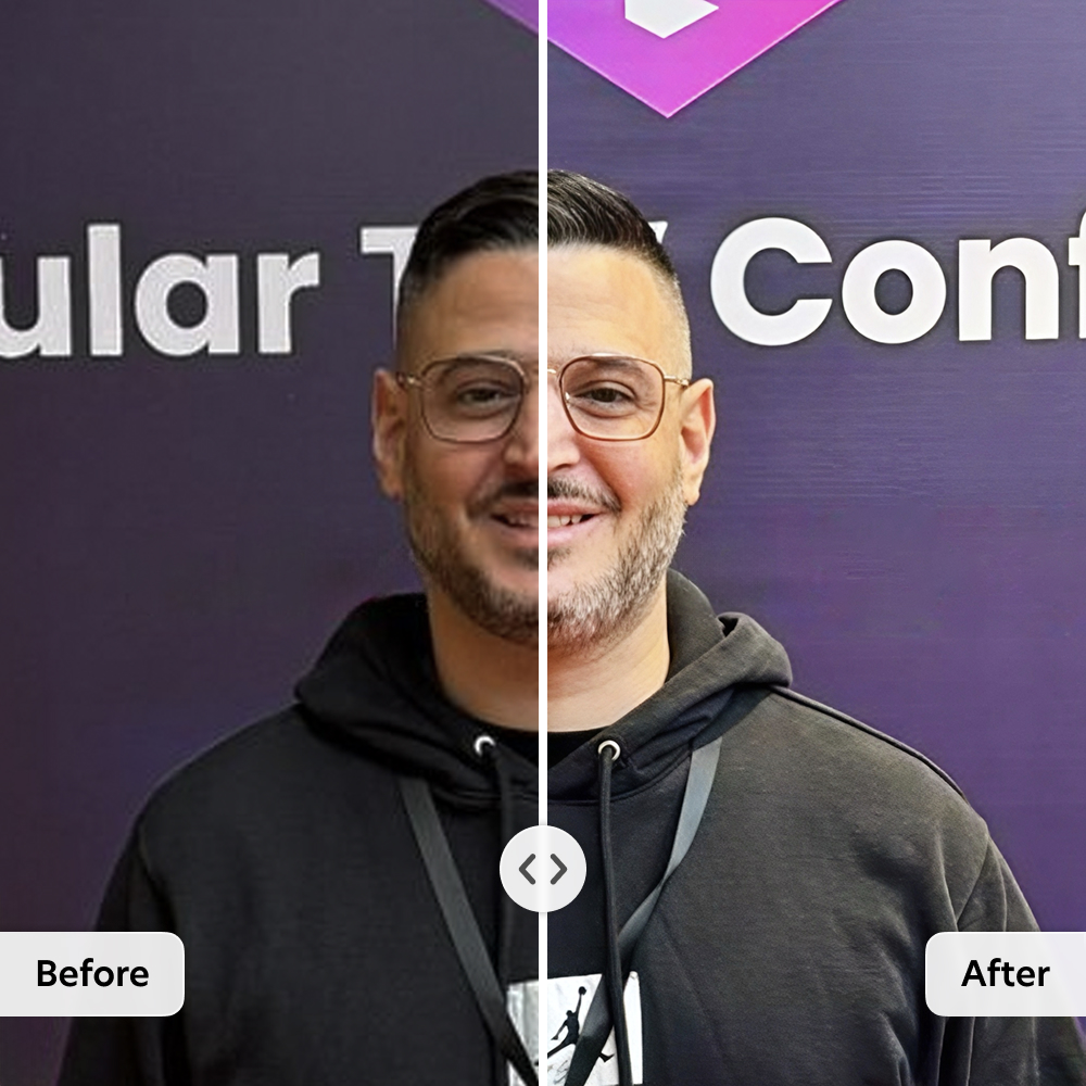 Enhance sharpens details and boosts resolution so headshots and profile pics look crisp on desktop and mobile.