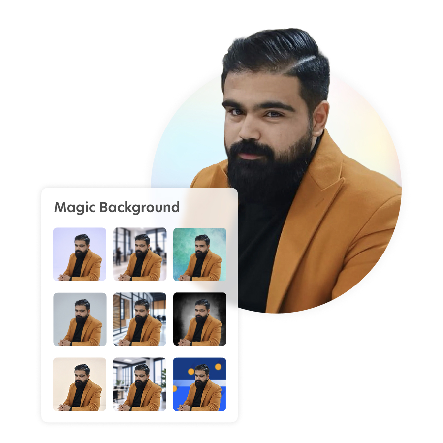 Remove a busy background in one tap for a clean, studio look. Then choose a solid color background that matches your brand, from pure white to soft gradients. Perfect for professional profile pictures and headshots, and great for keeping a consistent, on-brand appearance across your team.